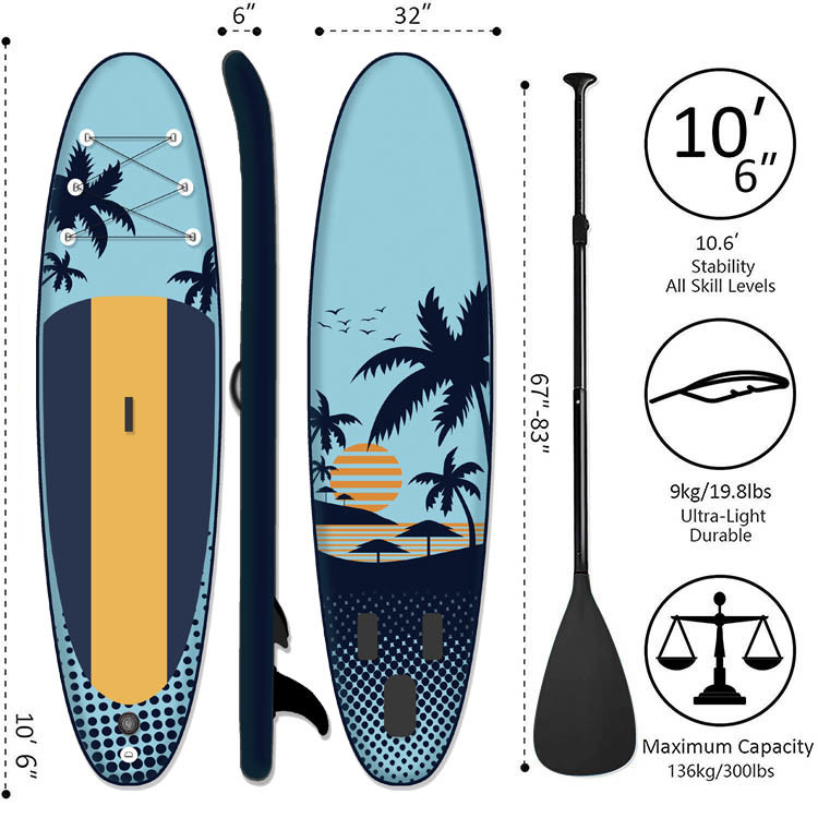 - [HOÀN THÀNH PHỤ KIỆN]Nó đi kèm với mọi thứ bạn cần để bắt đầu chèo: ván chèo bơm hơi 10'6 '', mái chèo nổi có thể điều chỉnh độ dài 3 mảnh, dây buộc mắt cá chân an toàn, bộ dụng cụ sửa chữa, vây có thể tháo rời, ba lô lớn thoải mái để chứa mọi thứ. ván lướt sóng và bắt đầu cuộc hành trình mới của bạn!